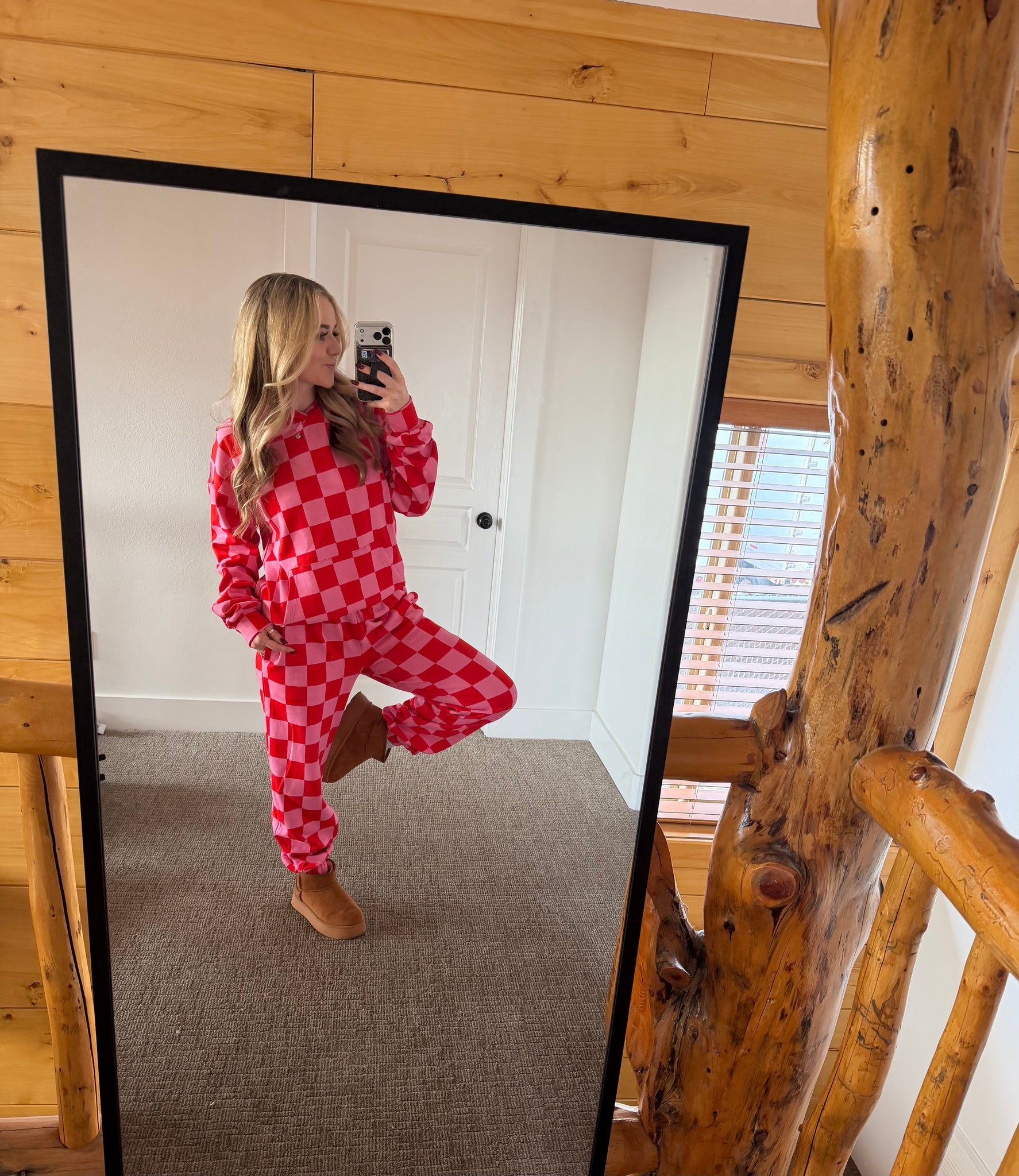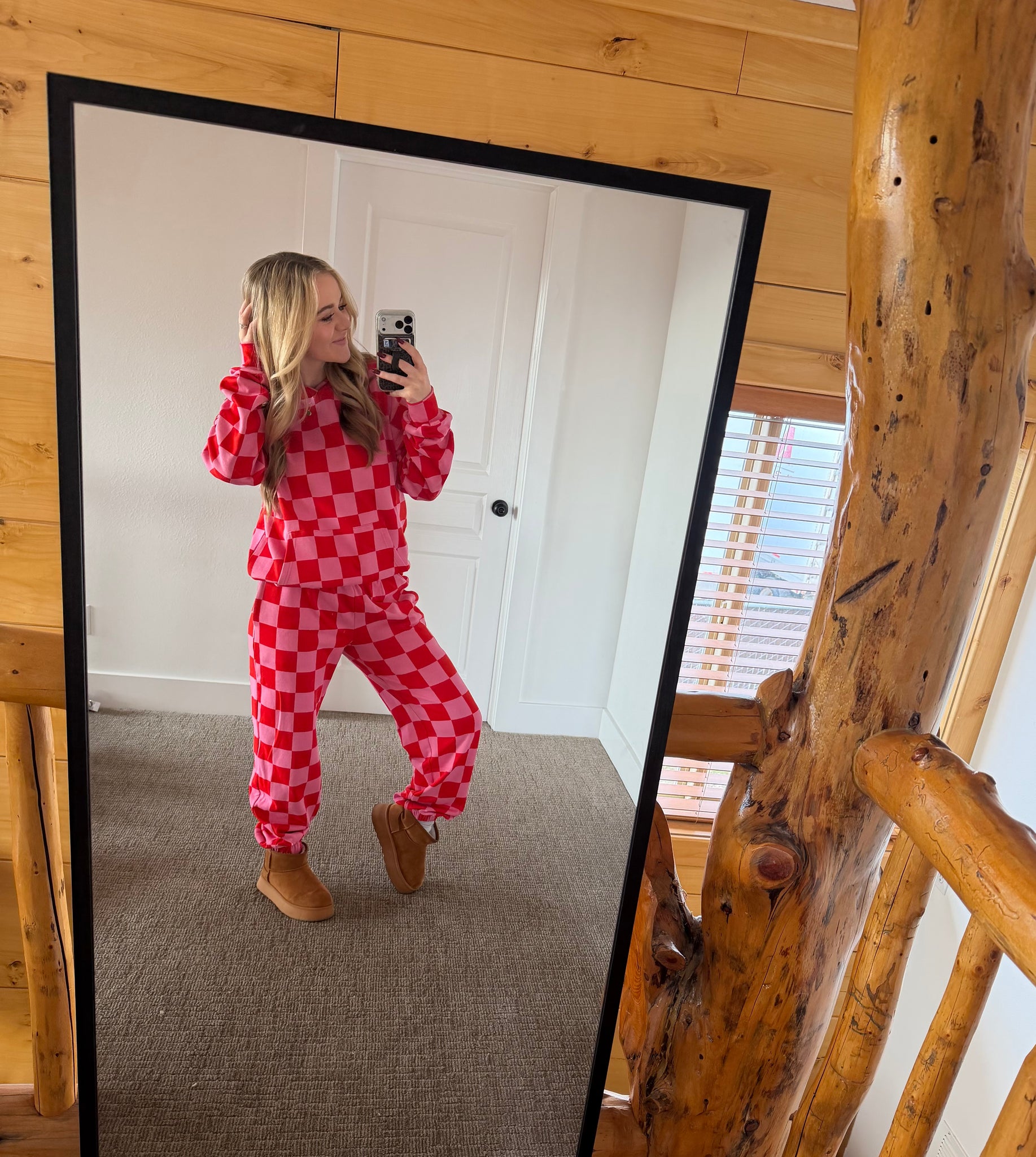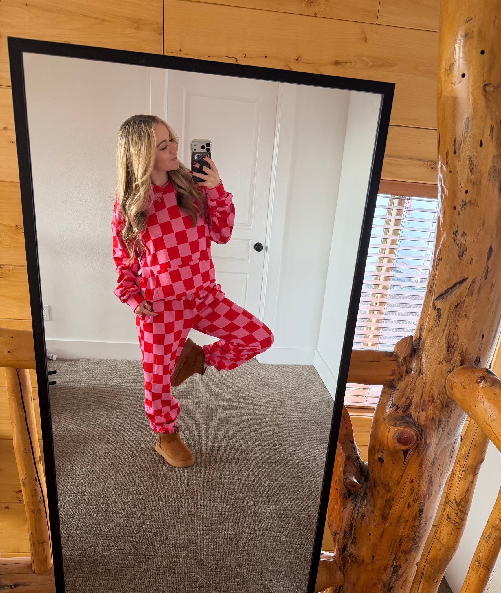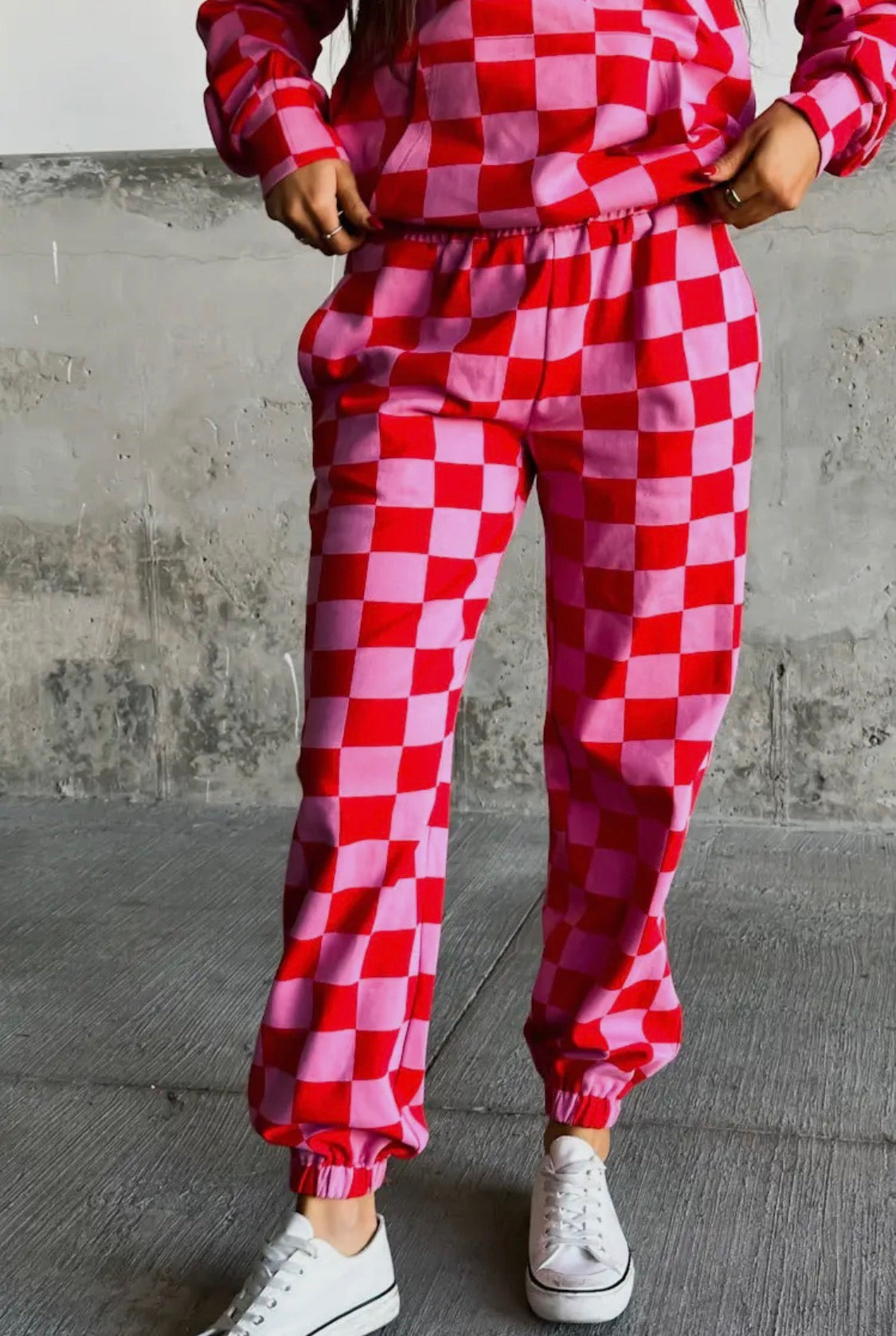 Checkered, cozy, and totally obsessed ❤️✨The softest material ever — you’ll want to live in this set! 😍 Don’t wait to add it to your closet! 😎🫶🏻 triple stretch fabric for your fav fit!
