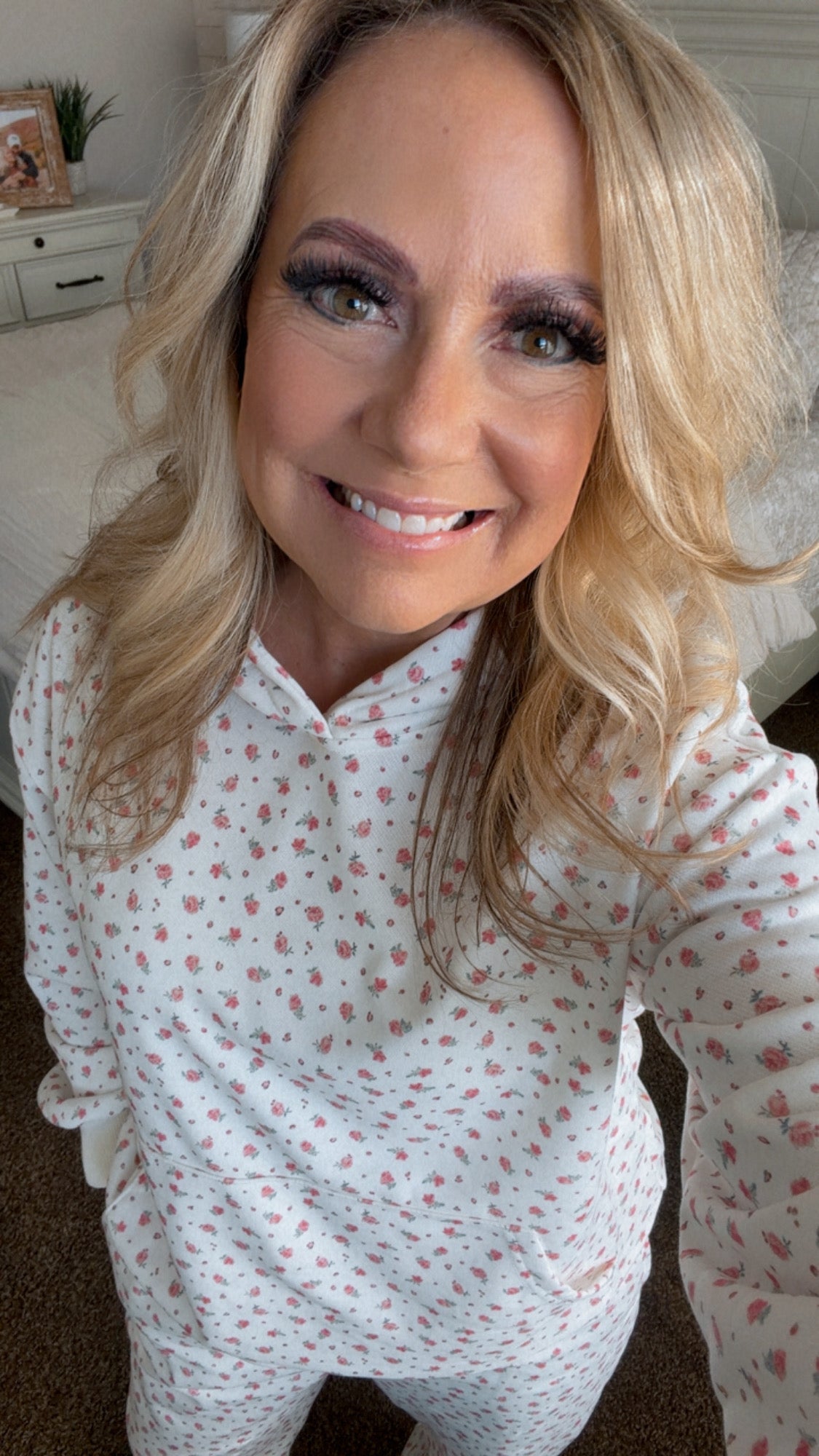 Cozy days, cute florals, and all the comfort 💕🌸 Fits tts. The cutest hoodie paired with cozy jogger.