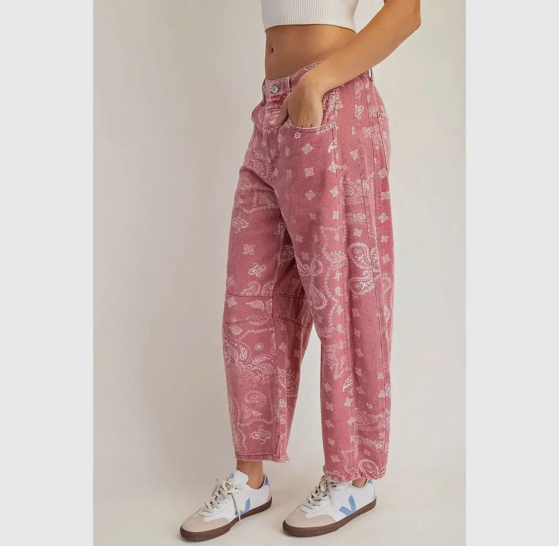 Paisley perfection 🌸 These statement jeans are giving effortless cool with a vintage twist. Comfy, flattering, and guaranteed to turn heads. Grab yours before they’re gone — limited stock! 💕